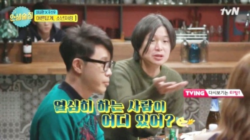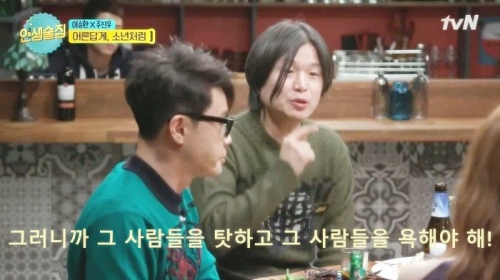 그런데 내가 이 부분에서 섬뜩함을 느꼈던 이유는 따로 있다. 몇 년 전에 보았던 '인생술집'의 한 장면이 떠올랐기 때문이다. 가수 이승철과 기자 주진우가 등장했던 회차였다.
